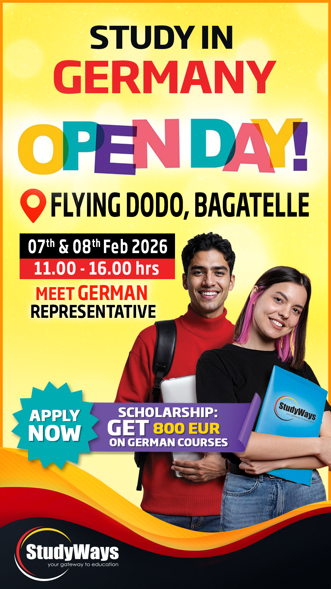 Join the Open Day on 07 & 08 February 2026 @Flying Dodo, Bagatelle. Benefit from free one-to-one counselling and get full information on German public and private universities ‼️